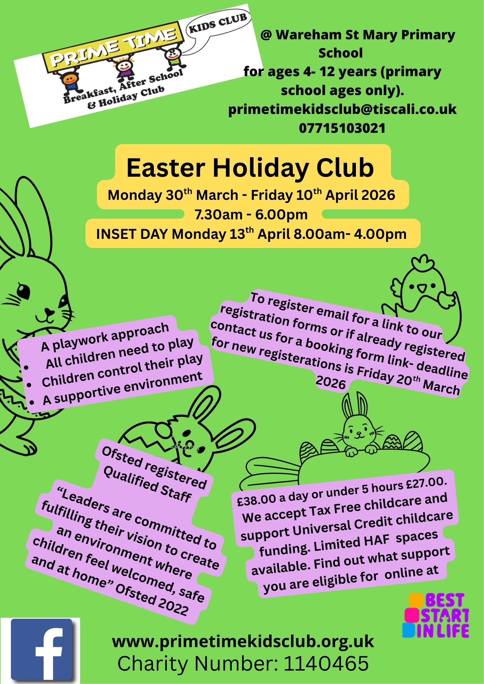 We run a Holiday Club for children aged 4-12 years during every school holiday, including most school INSET days.